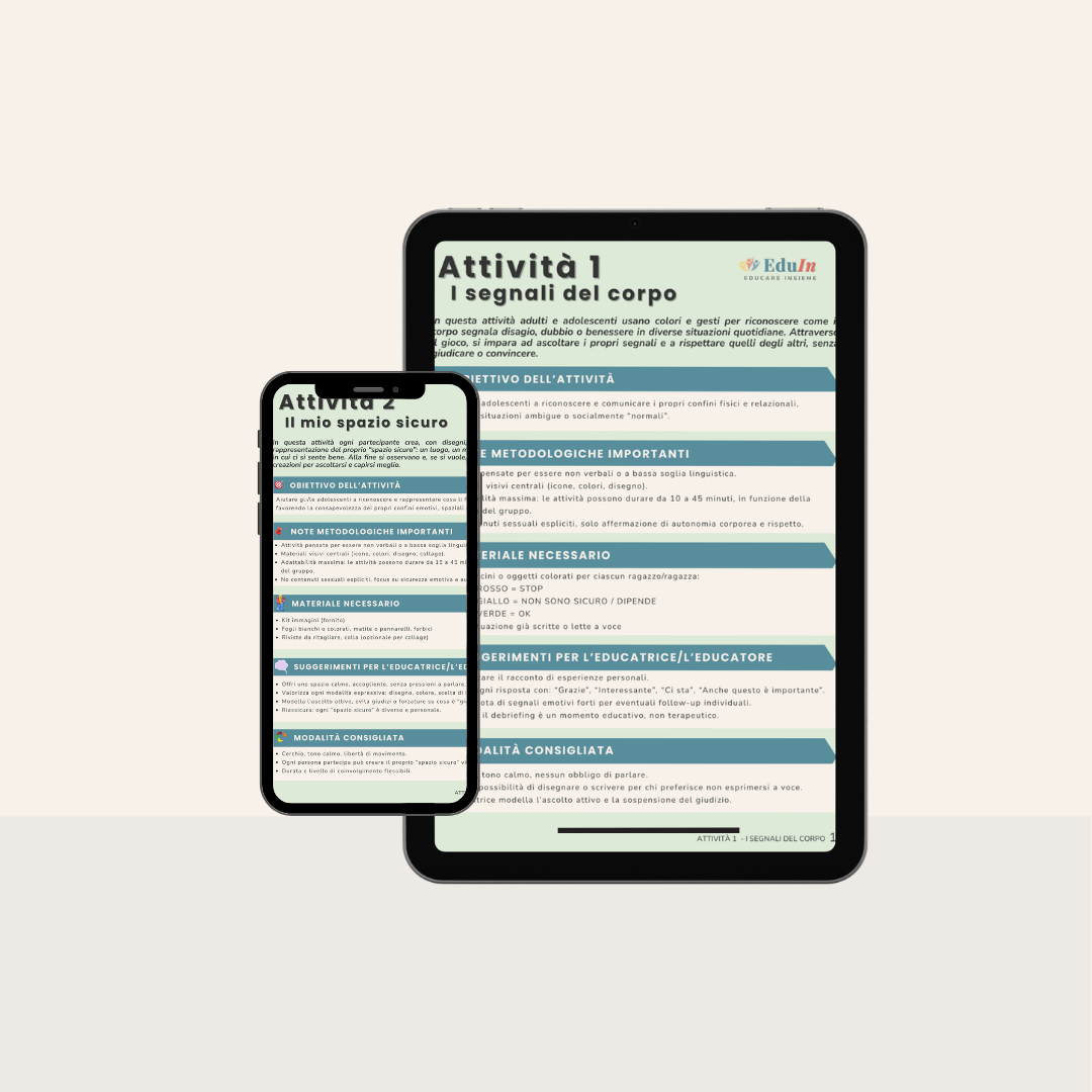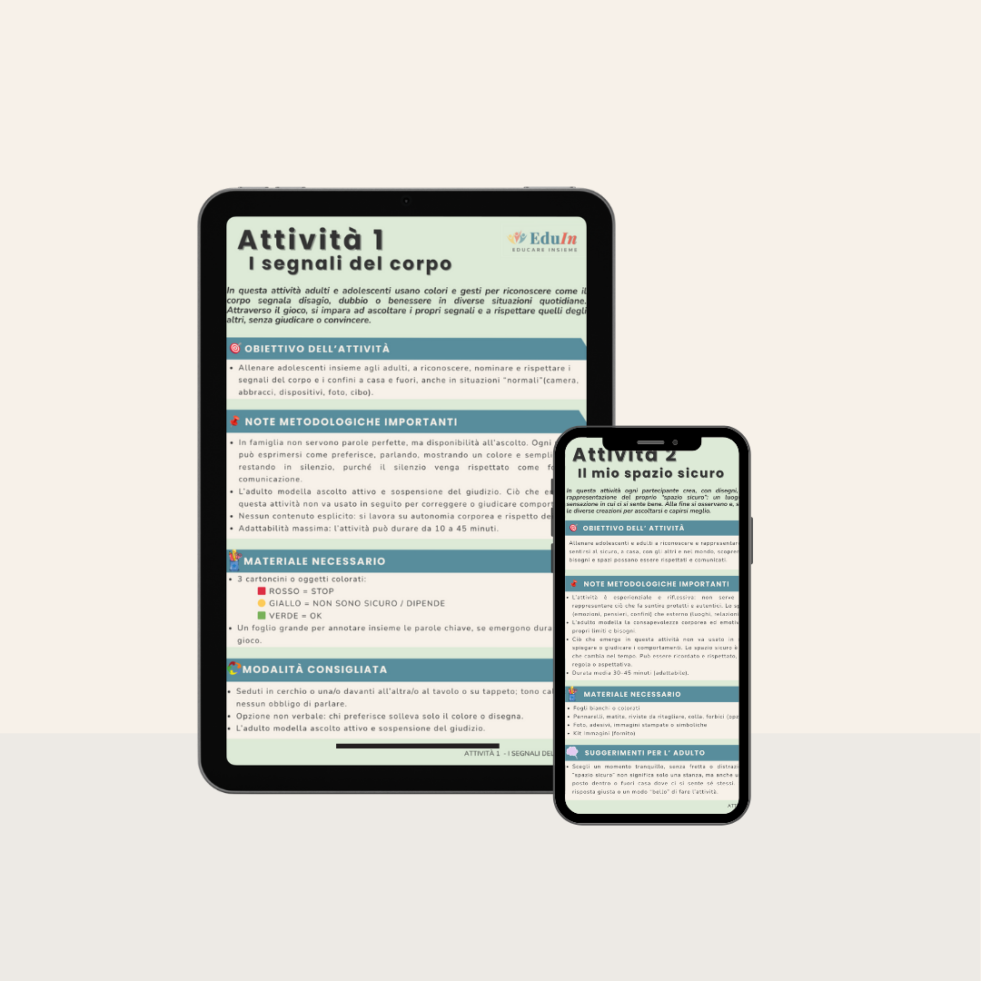 Condividiamo attività, domande e spunti per allenare l’ ascolto, riconoscere i confini e costruire sicurezza emotiva e fisica.